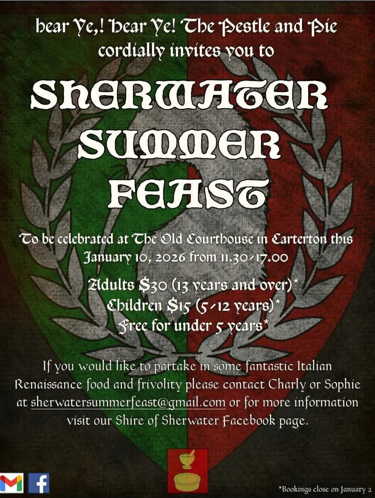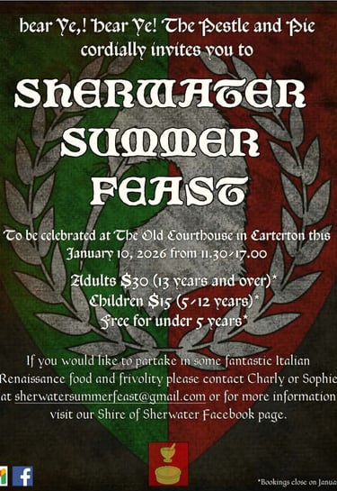 The food will be of an Italian Renaissance theme, but garb and personas of all kinds are welcome.
